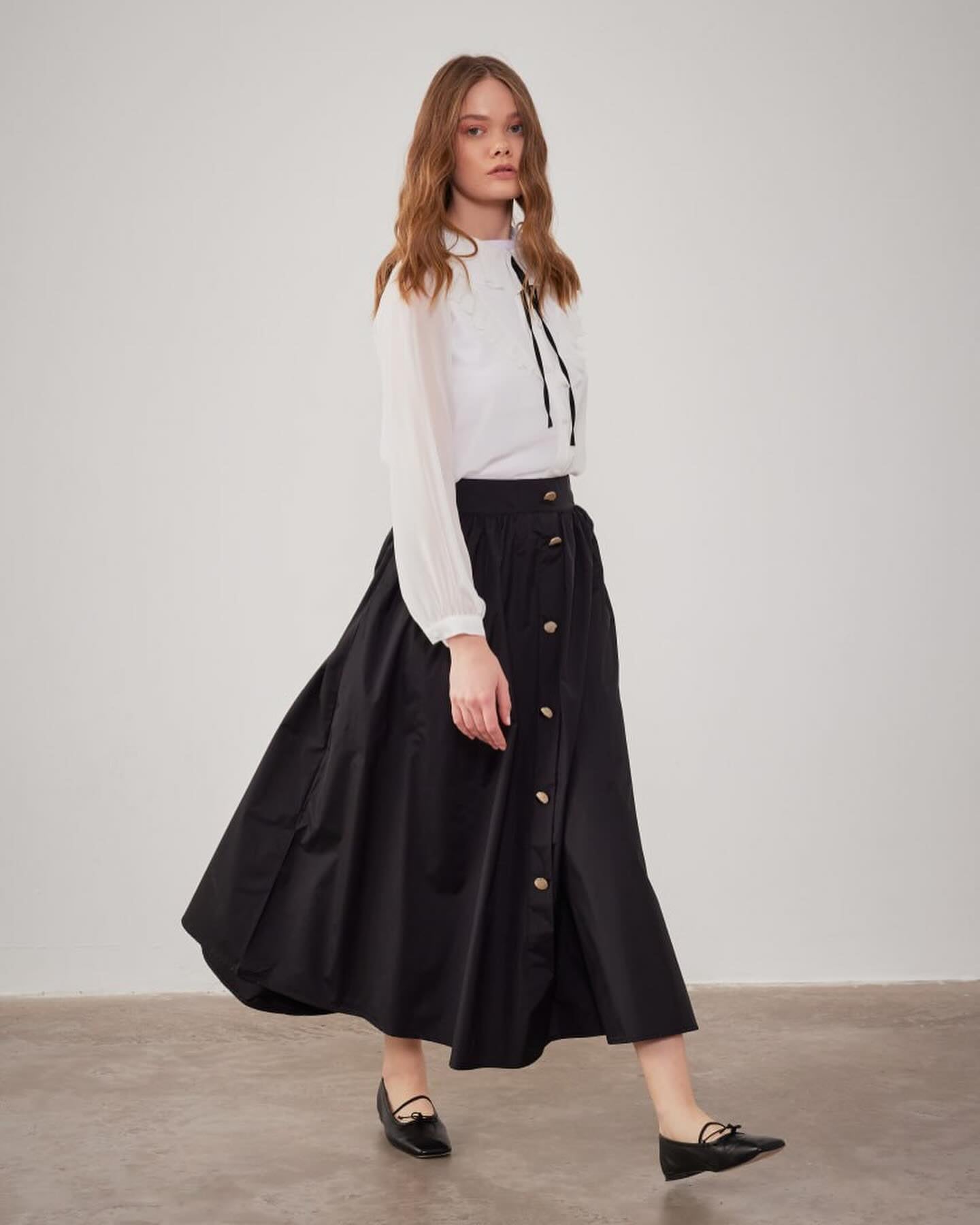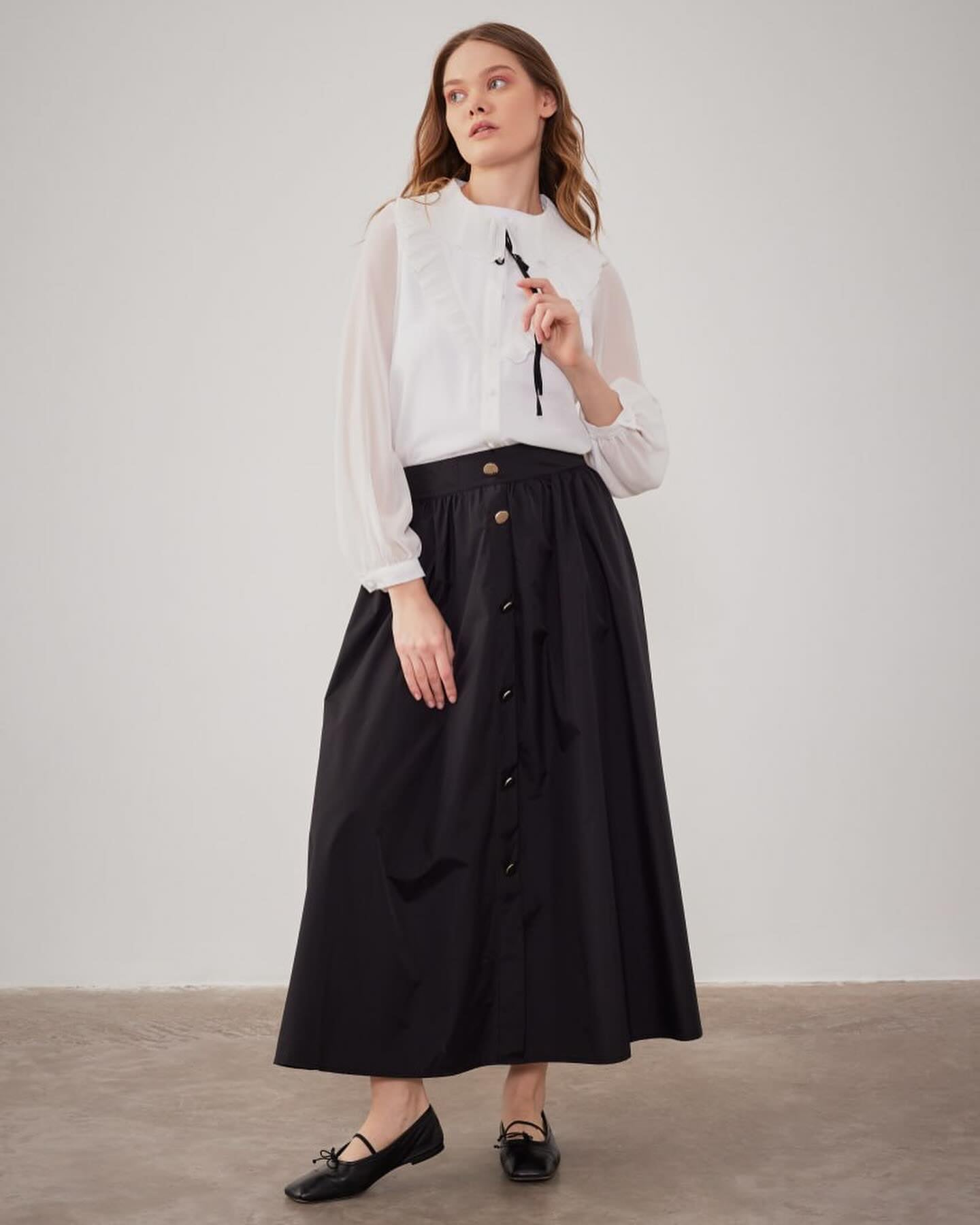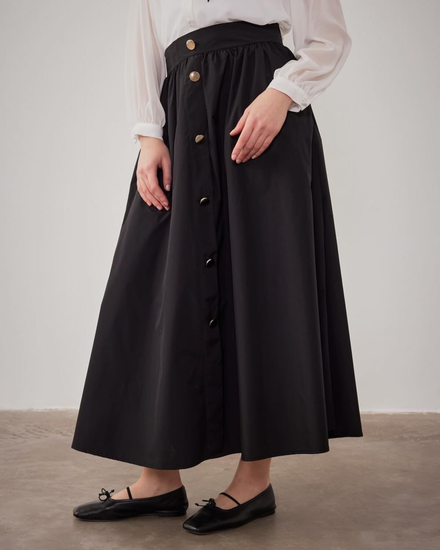 black parachute skirt 96cm with silver button